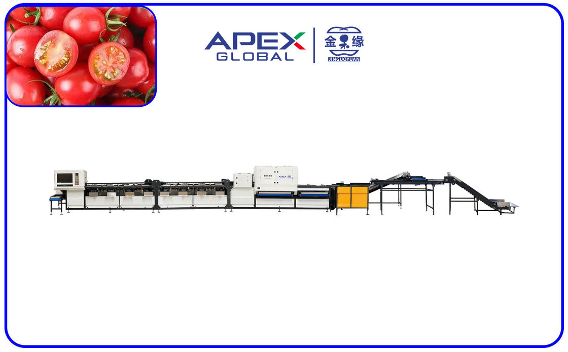 Πρόκειται για ένα αυτόματο μηχάνημα διαλογής, ειδικά σχεδιασμένο για ντομάτες κεράσι.Με 10 κανάλια, μπορεί να ανιχνεύσει και να ταξινομήσει τις ντομάτες κεράσι με σκανάρισμα περιστροφής 360 °.